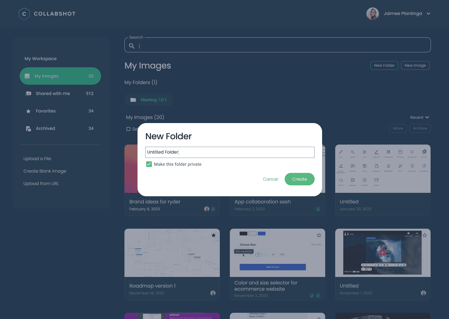 ✓ Users can now create folders to better organize their images. This should make it easier for them to find specific photos later on.