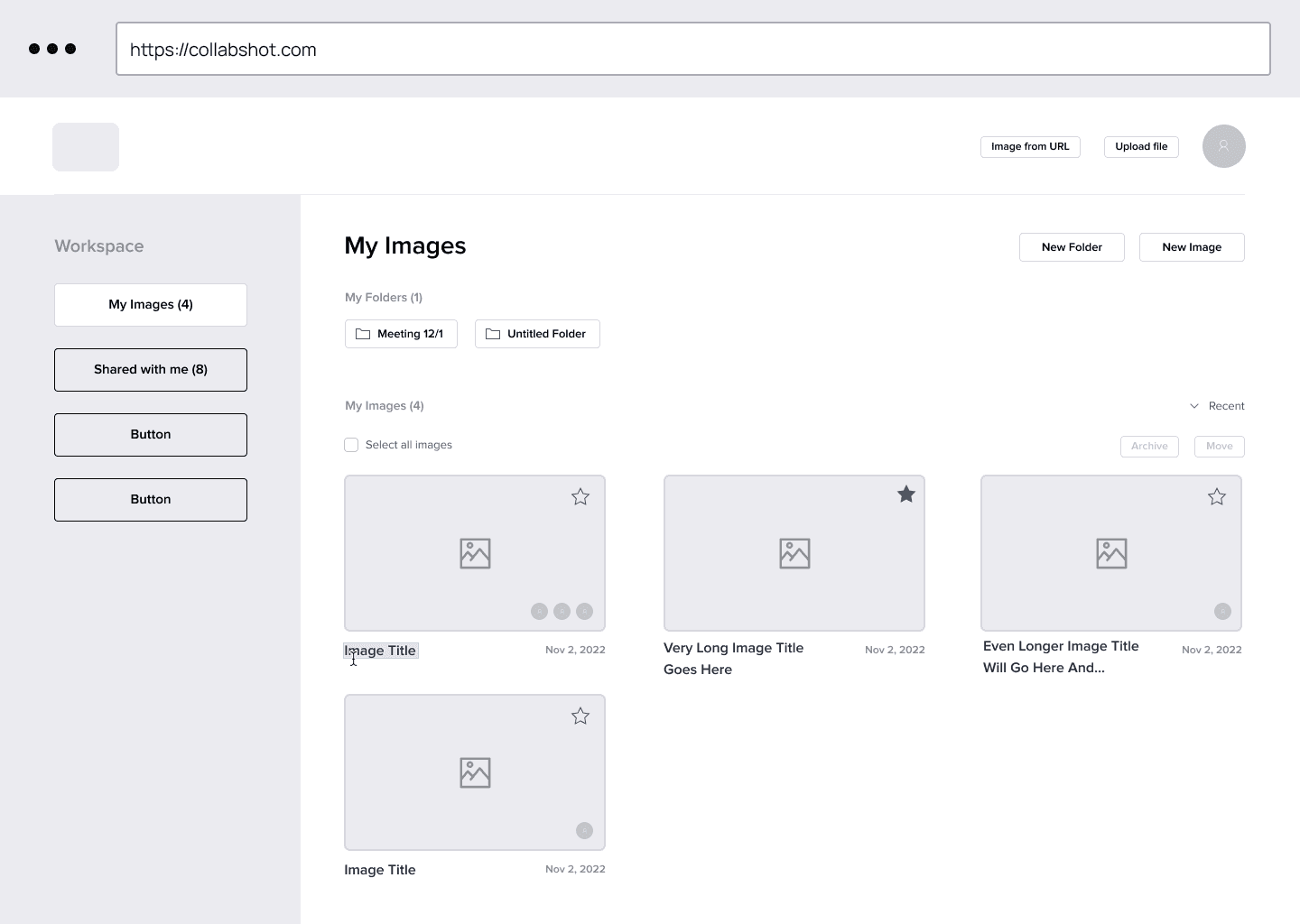 Collaborating with the product manager and engineering team, we discussed, tested, and refined the design until we were confident in our new image library. My focus was on the functionality of the new image library that offers users new ways to interact with their images, such as reorganizing, adding to folders, titling, and sharing settings.
