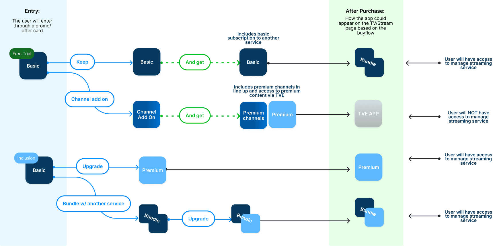 Even when certain streaming apps aren’t offered directly as inclusions or à la carte purchases, we can still surface them as part of bundled offerings. This same approach applies to channel add-ons and TV On Demand apps. By first showing customers the full range of content and services available—regardless of how they’re offered—we create a more intuitive, transparent experience that then clearly guides users toward the appropriate way to access or upgrade. This approach increases visibility for streaming partners, reduces confusion around available perks, and ensures customers have a complete, holistic view of everything included in their TV experience.