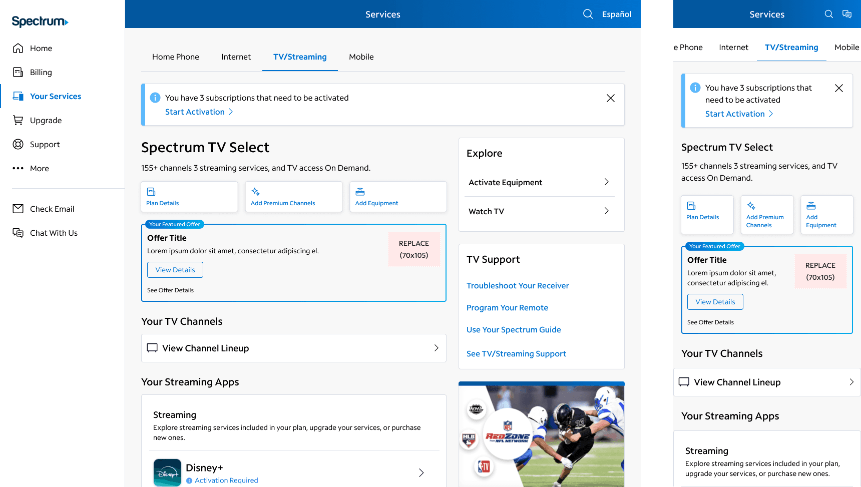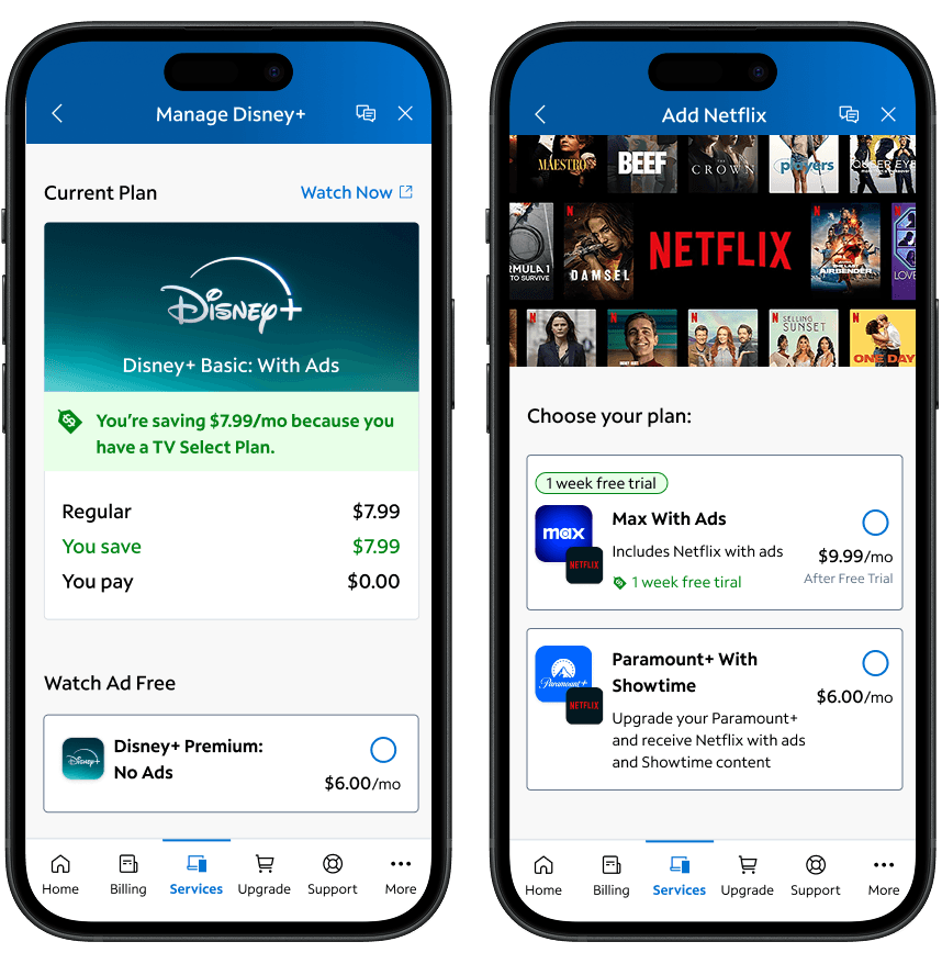 Create a centralized hub where customers can easily view, manage, and upgrade all of their TV and streaming products in one place. The experience increases awareness of included perks while also enabling customers to discover new apps, purchase additional services, and manage everything through a single, intuitive interface.